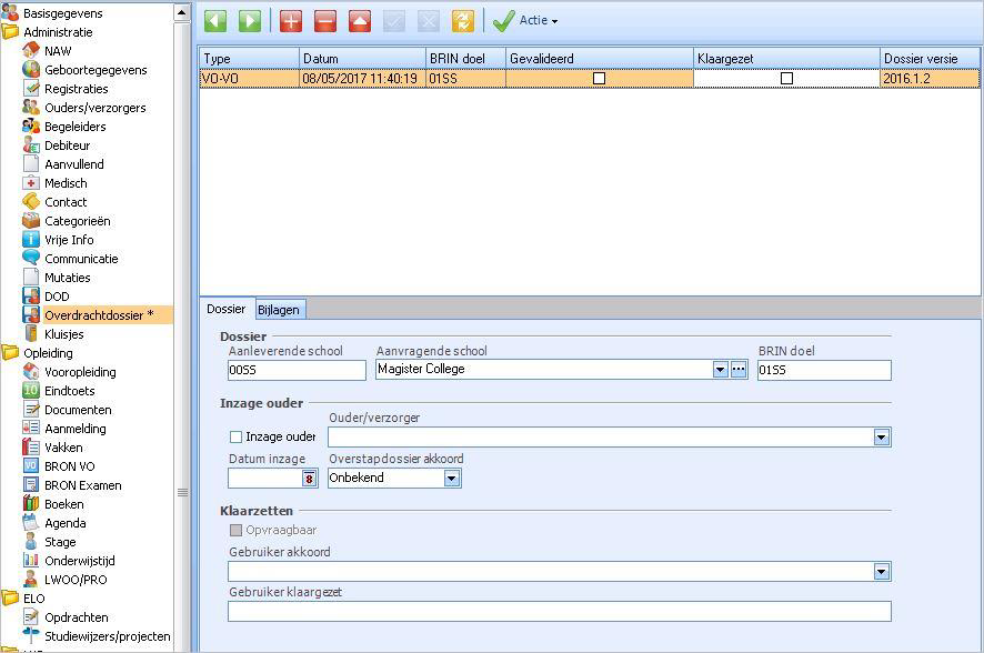 - PDF genereren: Magister maakt een pdf volgens het formaat dat Kennisnet heeft aangegeven. Hiermee krijgt u een compleet overzicht van het overstapdossier dat u hebt klaargezet voor de aanvragende school.