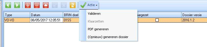 6. Ga naar het menu Actie. Kies: Valideren. Als het dossier correct is bevonden: klik op OK.